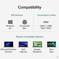 Supports full-featured USB-C, USB4, and Thunderbolt 4 / Thunderbolt 3 systems running Windows 10 / 11, ChromeOS 100+